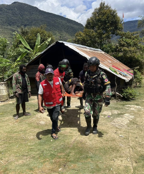 Puncak Jaya ~ Papuapatrolie-news.com. Kesigapan Satgas Pamtas Kewilayahan Yonif 753/AVT menolong warga masyarakat saudara Yelison Kogoya yang mengalami luka bakar akibat terkena percikan api dari bensin karna membuat api tungku di kampung Longgawai Distrik Kalome di Kab. Puncak Jaya, Rabu (31/01/2024).