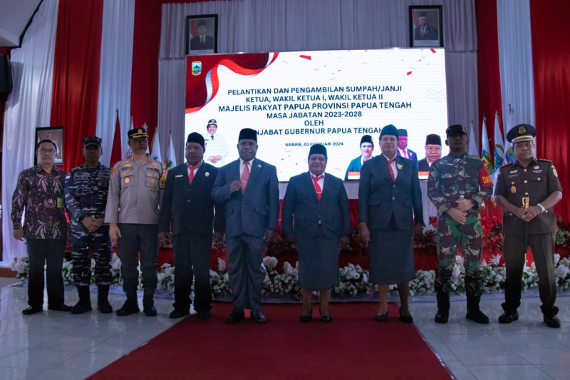 Nabire, PT – Papuapatrolie-news. Com, Kamis, 1 Februari 2024, Pemerintah Provinsi Papua Tengah melangsungkan pelantikan pimpinan Majelis Rakyat Papua Tengah (MRP_PT) untuk masa jabatan 2023-2028. Penjabat Gubernur Papua Tengah, Dr. Ribka Haluk, S.Sos., MM, memimpin upacara pelantikan yang berlangsung di Nabire.