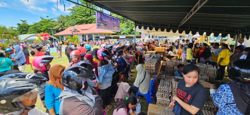 Nabire PT – Papuapatrolie-news.com – Dalam upaya menekan angka inflasi dan menjaga stabilitas harga bahan pokok di daerah, Pemerintah Provinsi Papua Tengah menggelar pasar murah di Taman Gizi, Oyehe, Kabupaten Nabire. Kegiatan ini melibatkan penjualan bahan pokok seperti gula, beras, telur, minyak goreng, dan minyak tanah, dan berhasil menarik antusiasme masyarakat, Jumat, 26 Januari 2024.