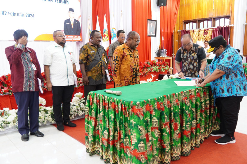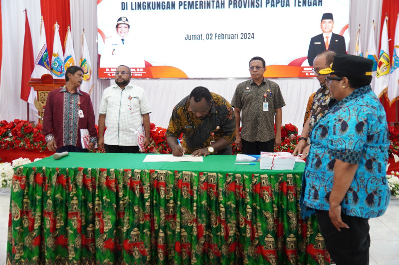 Dalam kesempatan tersebut, Pj Gubernur melaksanakan penandatanganan pakta integritas bagi pengguna anggaran di lingkup Pemerintah Provinsi Papua Tengah. Hal ini sebagai komitmen untuk melaksanakan tugas dan fungsi sesuai dengan peraturan perundang-undangan serta untuk tidak terlibat dalam korupsi, kolusi, dan nepotisme.