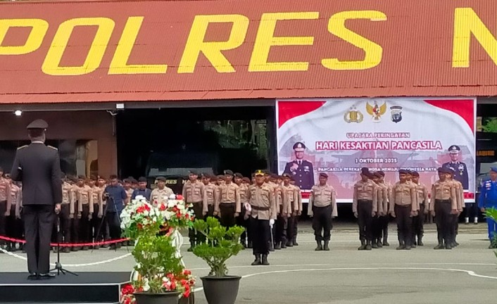 NABIRE PT – Papuapatrolie-news.com, Polres Nabire, Polda Papua Tengah, menggelar upacara peringatan Hari Kesaktian Pancasila di Lapangan Apel Mapolres Nabire, Rabu (1/10/2025).