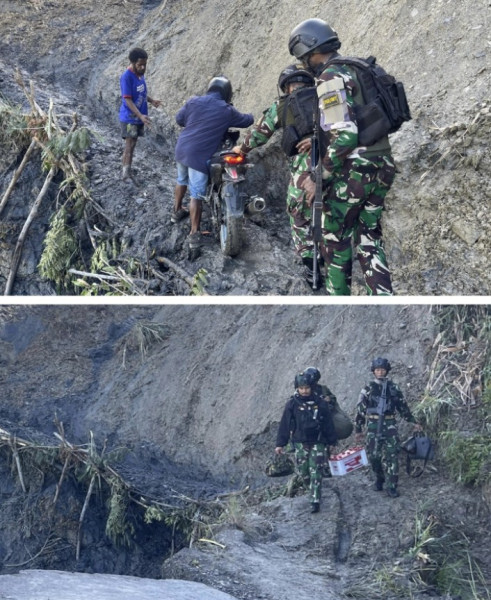 Puncak Jaya – Papuapatrolie-news.com, Dampak dari bencana alam berupa tanah longsor mendorong Satgas Pamtas Kewilayahan Yonif 753/AVT untuk memberikan bantuan tulus dan ikhlas kepada masyarakat. Aksi ini dilakukan dengan penuh dedikasi pada Senin (29/01/2024) di Distrik Tinggi Nambut, Kab. Puncak Jaya.