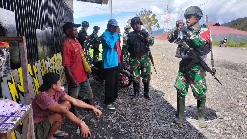 Puncak Jaya – Papuapatrolie-news.com, Satgas Pamtas Kewilayahan Yonif 753AVT pos Kota Baru melaksanakan komukasi sosial baik kepada warga masyarakat dan Polri dalam upaya menjalin keakraban dan bersinergi degan aparat Polri di Distrik mulia Kab. Puncak Jaya. Sabtu, 13 Januari 2024