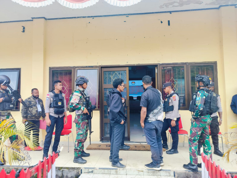Puncak Jaya – Papuapatrolie-news.com, Dalam upaya untuk menjamin kelancaran dan kesuksesan pelaksanaan Rapat Pleno Pemilu, Satgas Yonif 753/AVT bekerja sama dengan TNI/Polri turut serta dalam menjaga keamanan di Aula Sasana Kaonak Kantor Bupati, Kabupaten Puncak Jaya.
