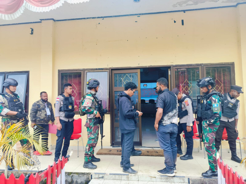 Rapat Pleno yang diselenggarakan oleh Komisi Pemilihan Umum (KPU) Kabupaten puncak Jaya mendapatkan pengamanan khusus demi memastikan jalannya acara tanpa kendala. pada Selasa, 05 maret 2024.