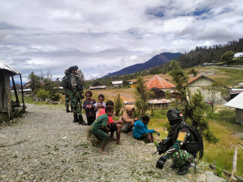 Puncak Jaya – Papuapatrolie-news.com, Kegiatan ajangsana kerumah warga masyarakat kampung Jigonikme dilakukan Pos Nume Satgas Pamtas Kewilayahan Yonif 753/AVT sekaligus berikan pelayanan kesehatan bagi warga masyarakat Distrik Nume Kab. Puncak Jaya, Rabu, (20/03/2024).