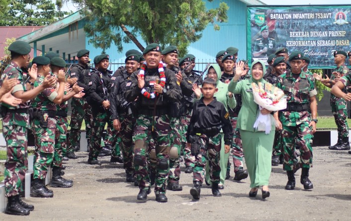 “Penyambutan ini adalah bentuk penghargaan atas kerja keras dan pengabdian personel Satgas Yonif 753/AVT,” ujar Kakorum.