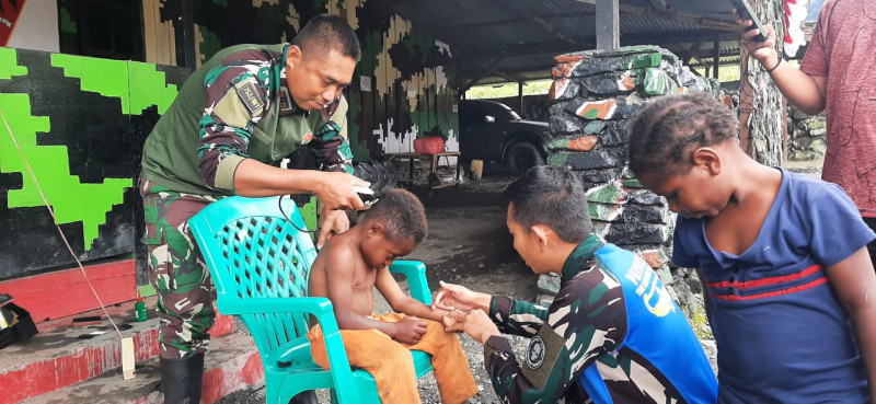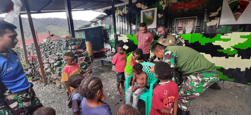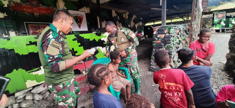 Kegiatan cukur rambutĀ bagi anak-anak yang diadakan pos mendapat respon baik bagi anak-anak Orang Asli Papua (OAP) kampung mulianeri dan antusiasnya sangat terlihat jelas dengan sabarnya mereka, dan penuh semangat menunggu giliran dalam antrian untuk mendapatkan cukuran rambutnya.