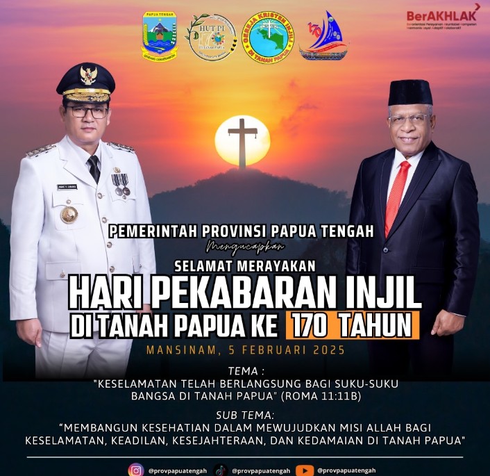 Pemprov Papua Tengah Ucapan Selamat Hari Pekabaran Injil di Tanah Papua 170 Tahun papuapat06/02/202529/07/20252622 Dilihat Post Views: 2,622 Pos terkaitPenganiayaan Berat Bermotif Dendam, Polsek Nabire Kota Limpahkan Kasus ke KejariPasar Murah di Nabire, Papua Tengah Tekan Inflasi Jelang NATARU 2025Tim Relawan MJP-CK Kumpul di Bandara Sam Ratulangi Jemput KaesangElly Lasut Lantik Relawan Gaspool Voor E2L Dikediamannya