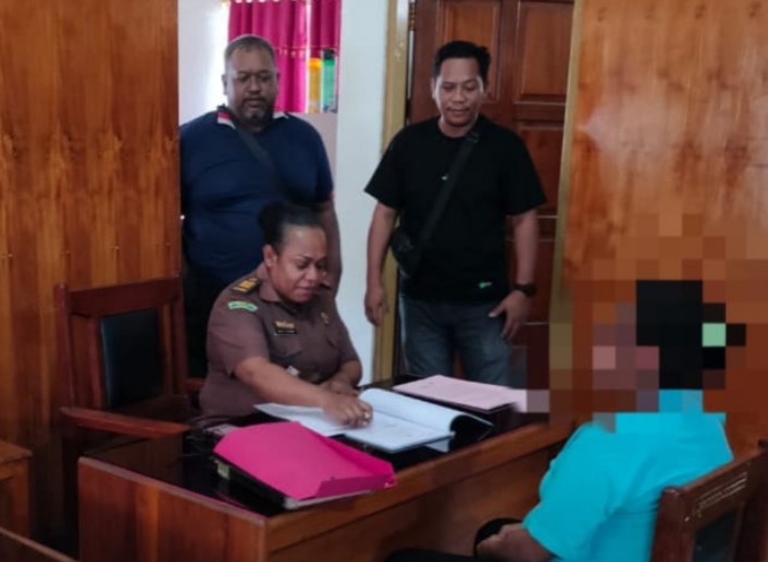 Penyerahan tersangka berlangsung sekitar pukul 10.00 WIT di Kantor Kejaksaan Negeri Nabire dan diterima langsung oleh Jaksa Penuntut Umum, Ema Kristina Dogomo, S.H.