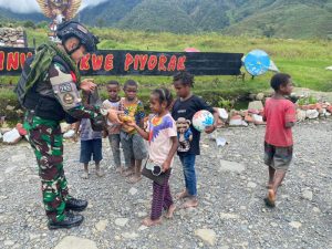 Berbagi Kebaikan: Satgas Pamtas Kewilayahan Yonif 753/AVT Bagikan Snack Gratis untuk Anak-Anak OAP di Kampung Pagaleme