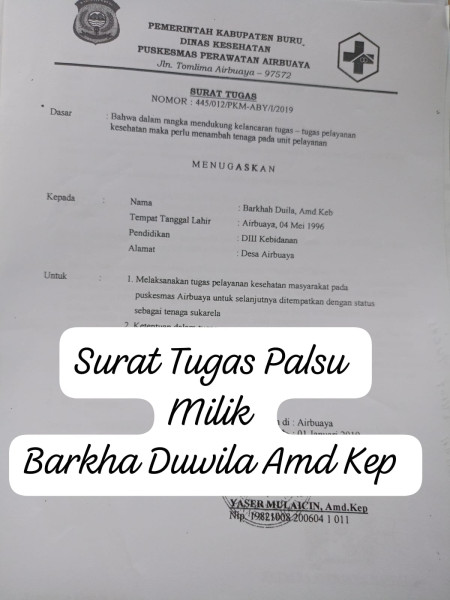 Pada 17 Januari 2023, dua bidan, Bakra Duwila (Puskesmas Airbuaya) dan Finarya Taihitu (Puskesmas Wamlana), menjadi korban pemalsuan administrasi. Meskipun ketahuan bahwa administrasi kedua bidan tersebut cacat dan melanggar aturan yang ditetapkan oleh KEMENPAN RB, Pemda Kab Buru tetap melanjutkan pemberkasan dan pengisian Data Riwayat Hidup (DRH) tanpa tindakan hukum.