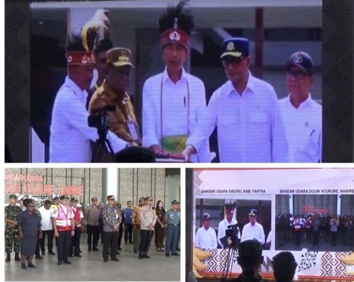Papua Tengah – Papuapatrolie-News.Com, Kamis, 23 November 2023, Presiden Joko Widodo secara resmi, meresmikan dua Banda baru di Papua, yakni Bandara Douw Aturure di Nabire, Papua Tengah, Bandara Siboru di Fakfak, Provinsi Papua Barat, menandai langkah penting dalam pengembangan infrastruktur di wilayah tersebut. Acara ini merupakan bagian dari komitmen pemerintah untuk terus memperkuat konektivitas dan mendukung pertumbuhan di wilayah timur Nusantara.